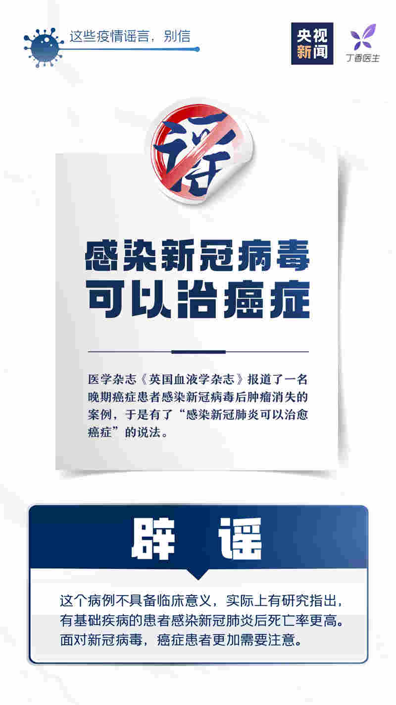 感染新冠病毒可以治愈癌癥等等