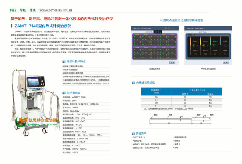 內熱式針灸治療儀(以下簡稱治療儀)由主機及附件組成,主機的主要組成部分包括供電模塊、主模塊、控制模塊、觸摸屏、按鍵、外殼,附件包括內熱式針灸針(以下簡稱內熱針)和連接線。